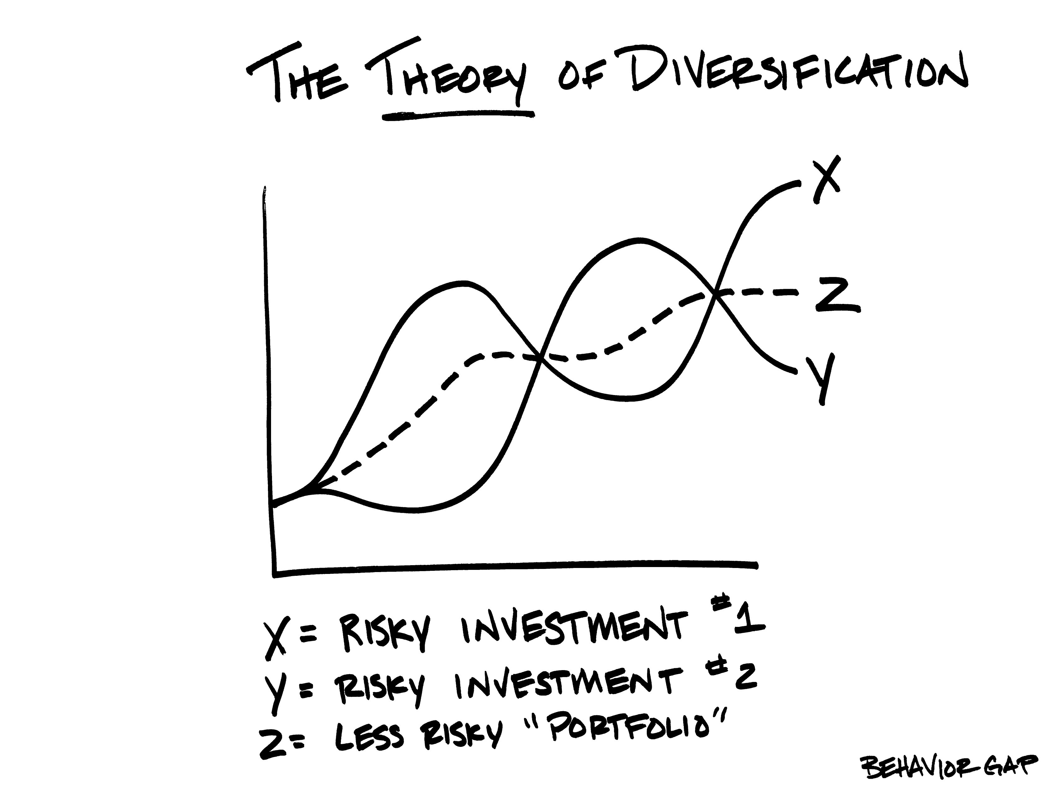 Let’s set the stage by discussing how we think about portfolio construction and why we often look beyond traditional stocks and bonds in an attempt to build more robust client portfolios. Most of our clients' primary objective is to improve their odds of meeting their financial goals, such as retirement. We believe broad diversification helps portfolios because the more asset classes and strategies that provide positive returns over time and diversify one another, the more predictable the portfolio’s range of returns. Furthermore, the more independently each asset class moves related to one another, the closer the correlation is to zero, and the more positive its diversification benefits. The end result of a broadly diversified portfolio is that it should experience a smoother ride over the long run. Carl Richards of Behavior Gap does a nice job of simplifying this concept through the image.